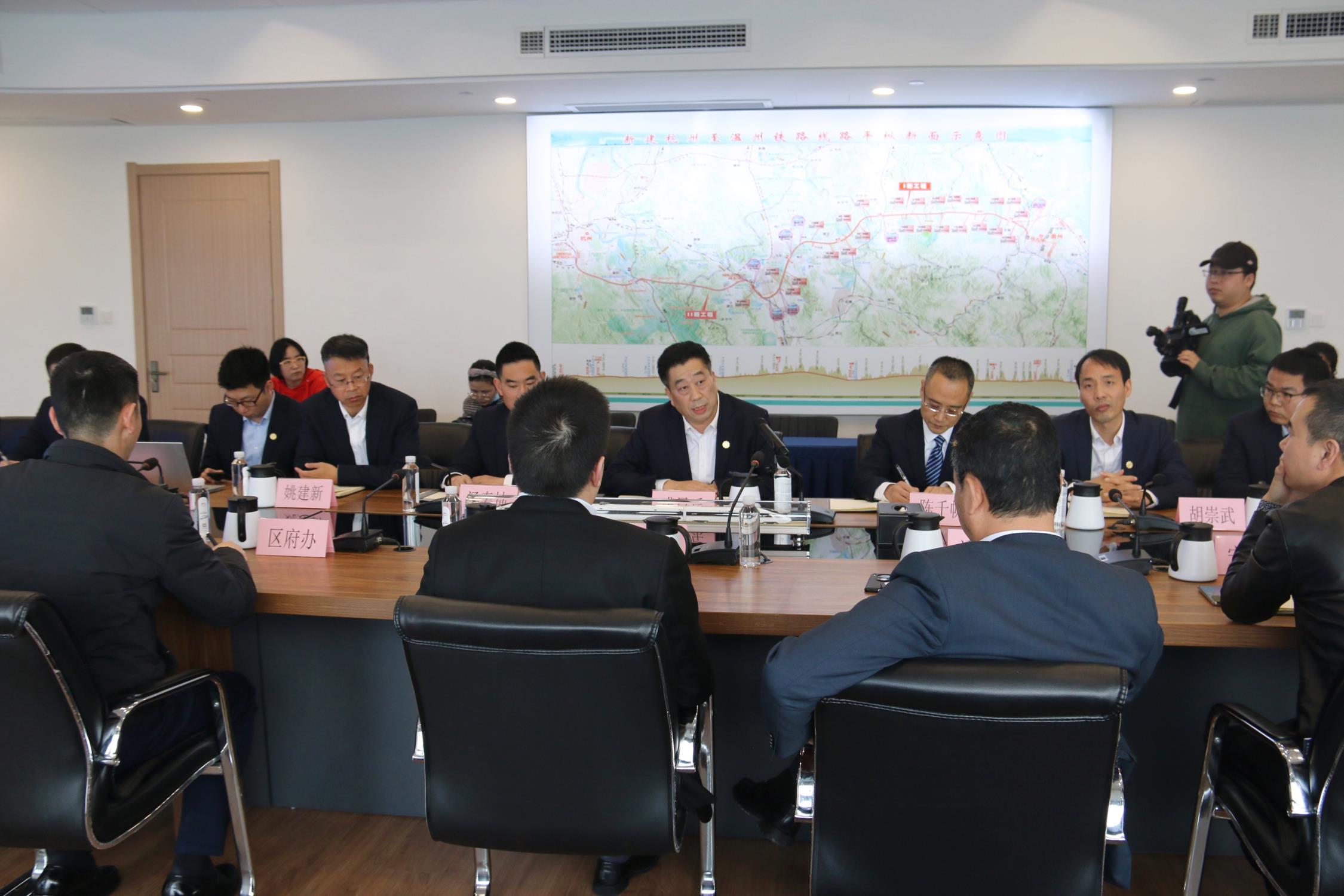 會上,夏禹槳一行就企業發展概況、杭溫鐵路建設進展與參會人員進行了交流。隨后,董事長盛星樂進對企業經營現狀、未來規劃做了簡要匯報,并對如何促進地方建筑業持續健康發展暢談想法和建議。