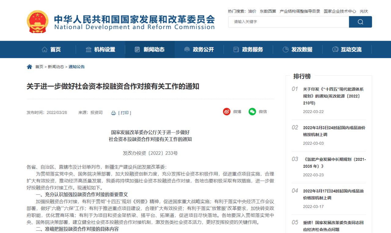 為貫徹落實黨中央、國務院決策部署,加大投融資創新力度,充分發揮社會資本積極作用,促進重點項目實施,合理擴大有效投資,推動經濟高質量發展,我委將持續加強社會資本投融資合作對接,各地也要積極采取有效措施,進一步做好投融資合作對接工作?,F通知如下。