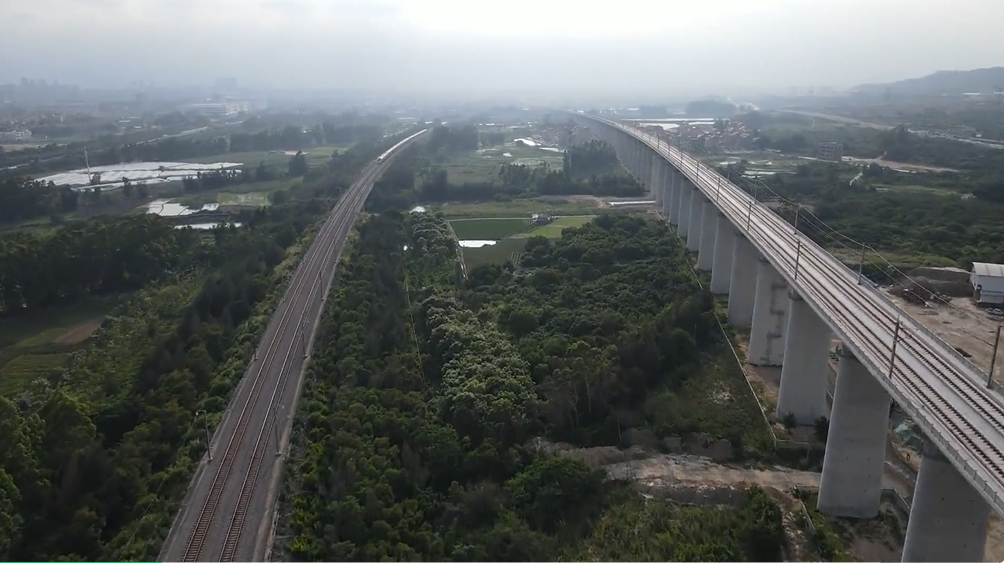 福廈高鐵是我國“八縱八橫”高速鐵路網沿海通道的重要組成部分,首條設計時速每小時350公里的跨海高鐵,于2017年9月全線開工,正線全長277.42公里,設計時速350公里;正線橋梁84座、隧道29座,橋隧比高達85.1%。