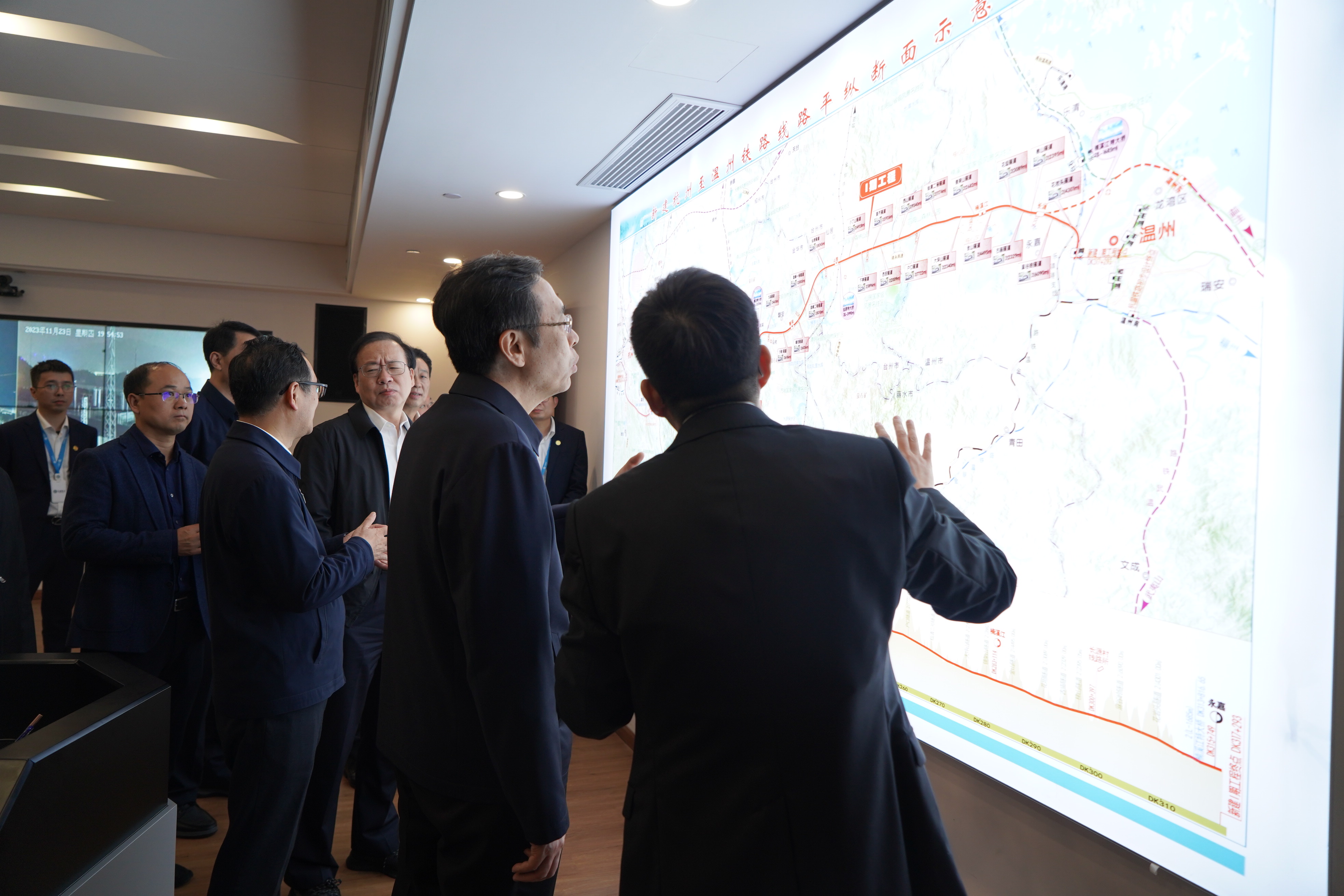 在集團杭溫作戰(zhàn)指揮室,通過現(xiàn)場匯報,調(diào)研組一行詳細了解了百盛近年來聚焦基建行業(yè),在投建營、全產(chǎn)業(yè)鏈、全生命周期運維服務等方面的發(fā)展成就,聽取了杭溫鐵路建設改革成果,并與杭溫現(xiàn)場施工人員連線,了解項目現(xiàn)場最新情況。